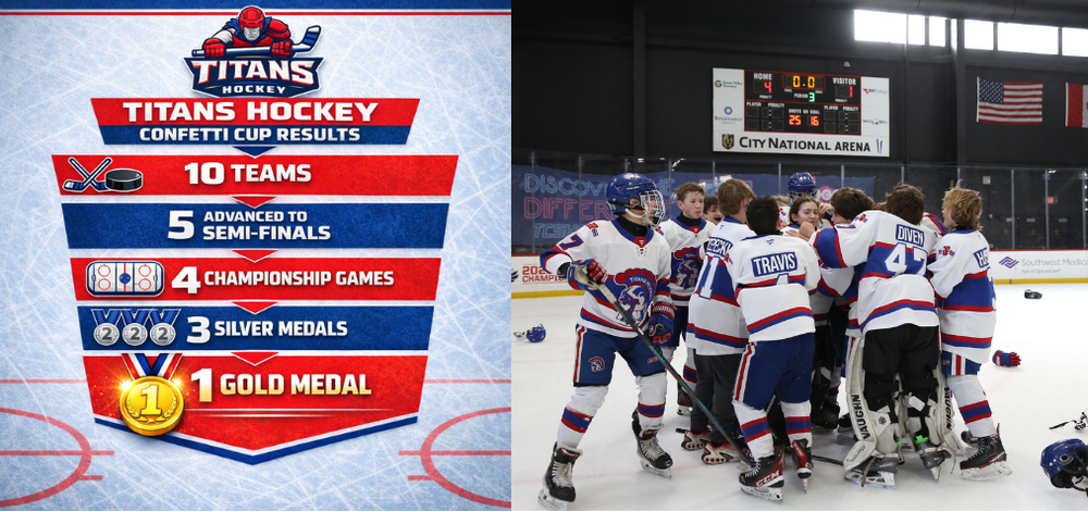 What a weekend in Vegas for Titans Hockey! The Confetti Cup was about so much more than wins and medals — it was about connection, growth, and competition, and our Titans delivered on all fronts.